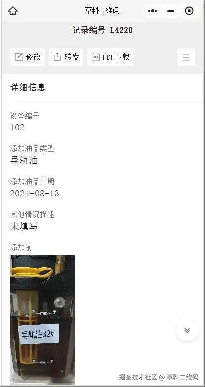 全生命周期管理:从点检、保养到报修的历史记录,草料二维码实现了设备维护的全周期数字化管理。