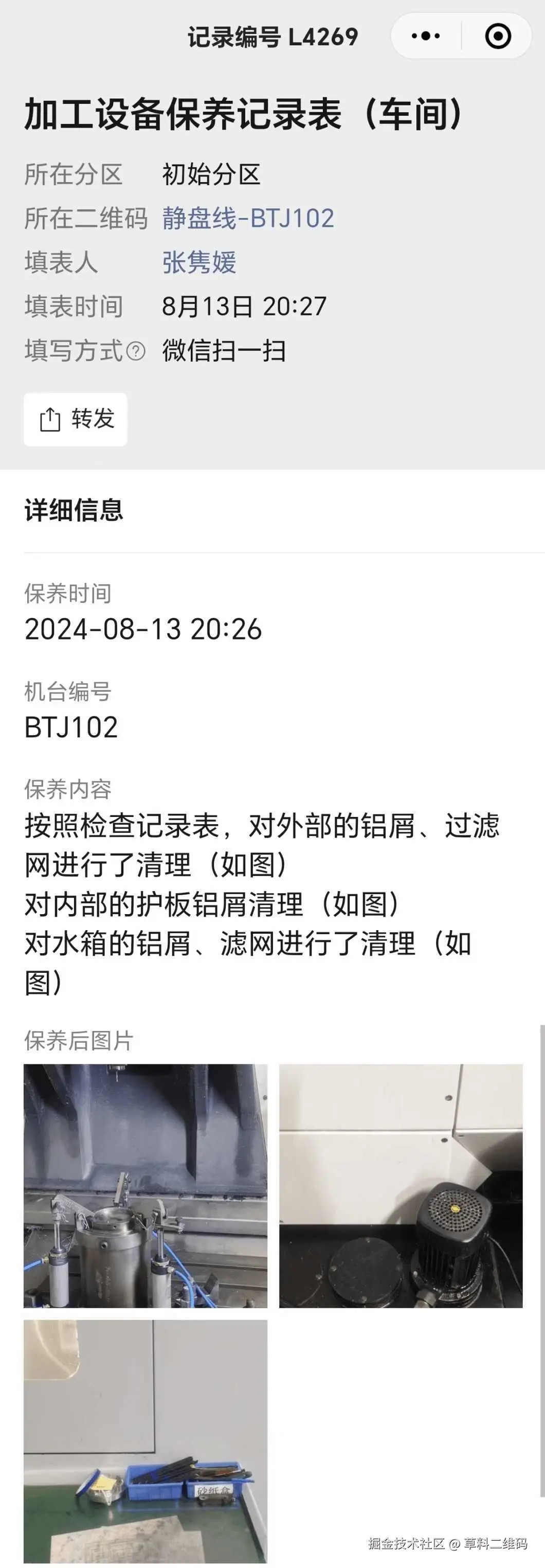 记录详实:保养前后状态均需扫码拍照记录,确保每次保养均有迹可循。