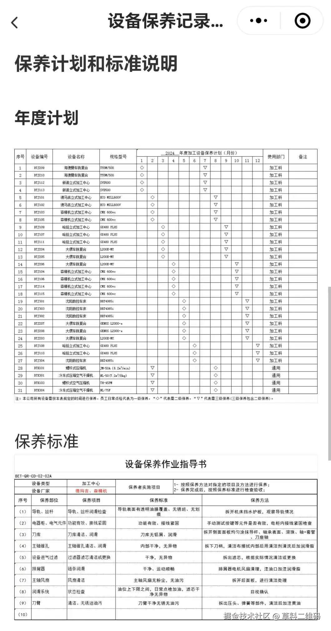 保养计划和标准在二维码信息上展示:依据设备特性,设定标准化保养流程,在二维码上清晰可见。