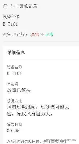 修复填报标准化:维修团队通过扫描二维码记录维修过程及结果,采用标标准格式确保了信息的准确与规范。