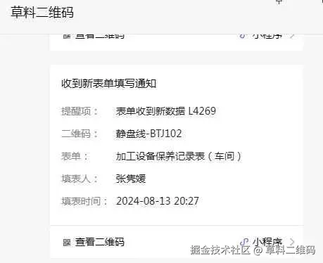 信息推送:关键设备点检完成后,推送到微信小程序,进行互动确认,保证点检有效。