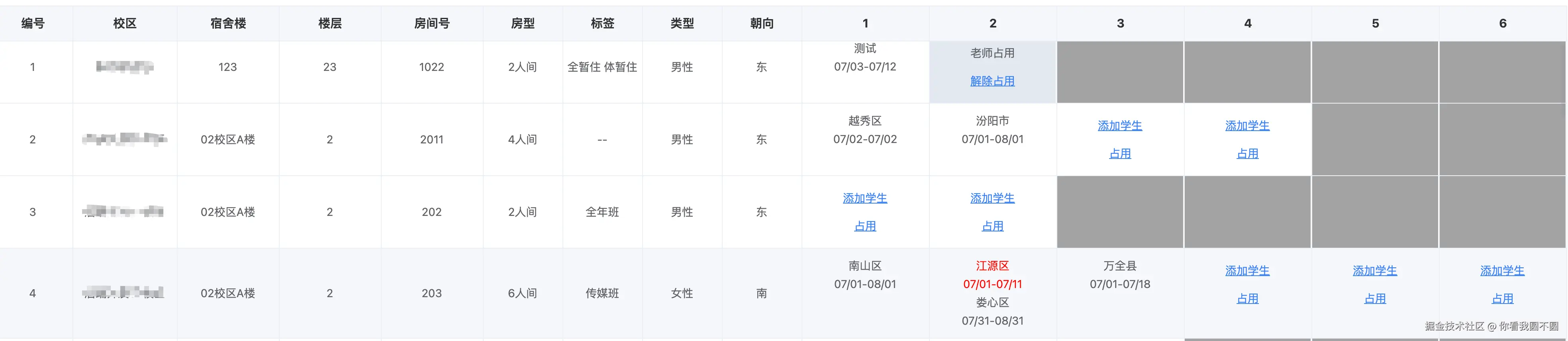 对于床位使用信息对应单元格内的内容,从数据层面来说 是这样的结构