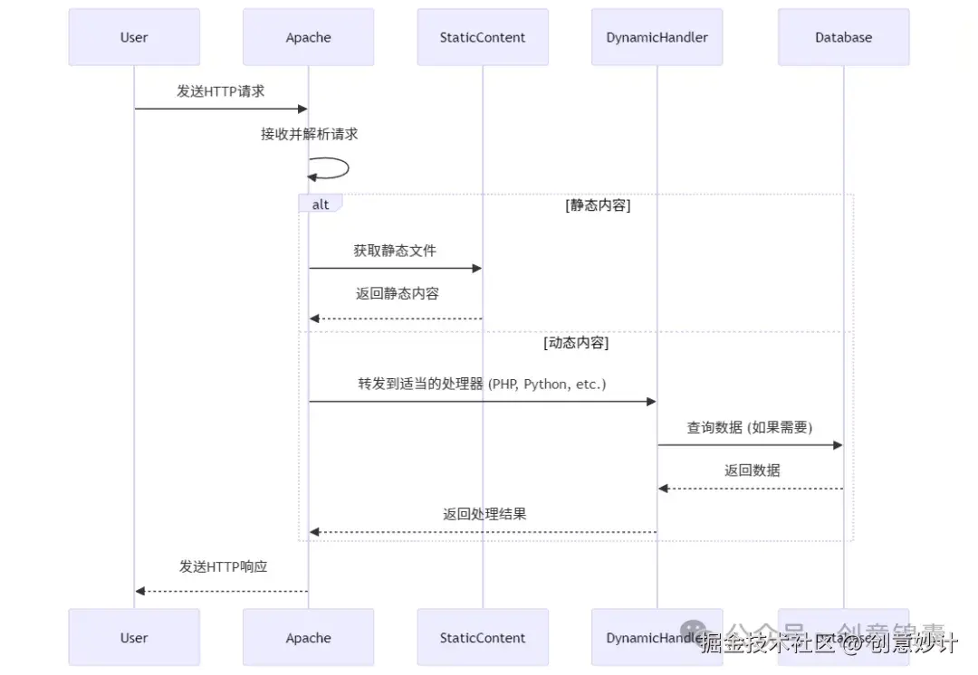 为了更好地理解 Apache,我们可以将其工作过程用一个简化的流程图表示: