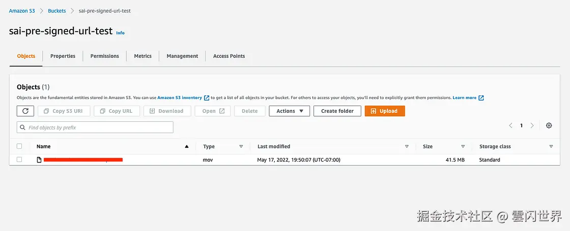 - 对象上传后,需要为该对象创建一个预签名的 URL 链接,以便与其他人共享此文件