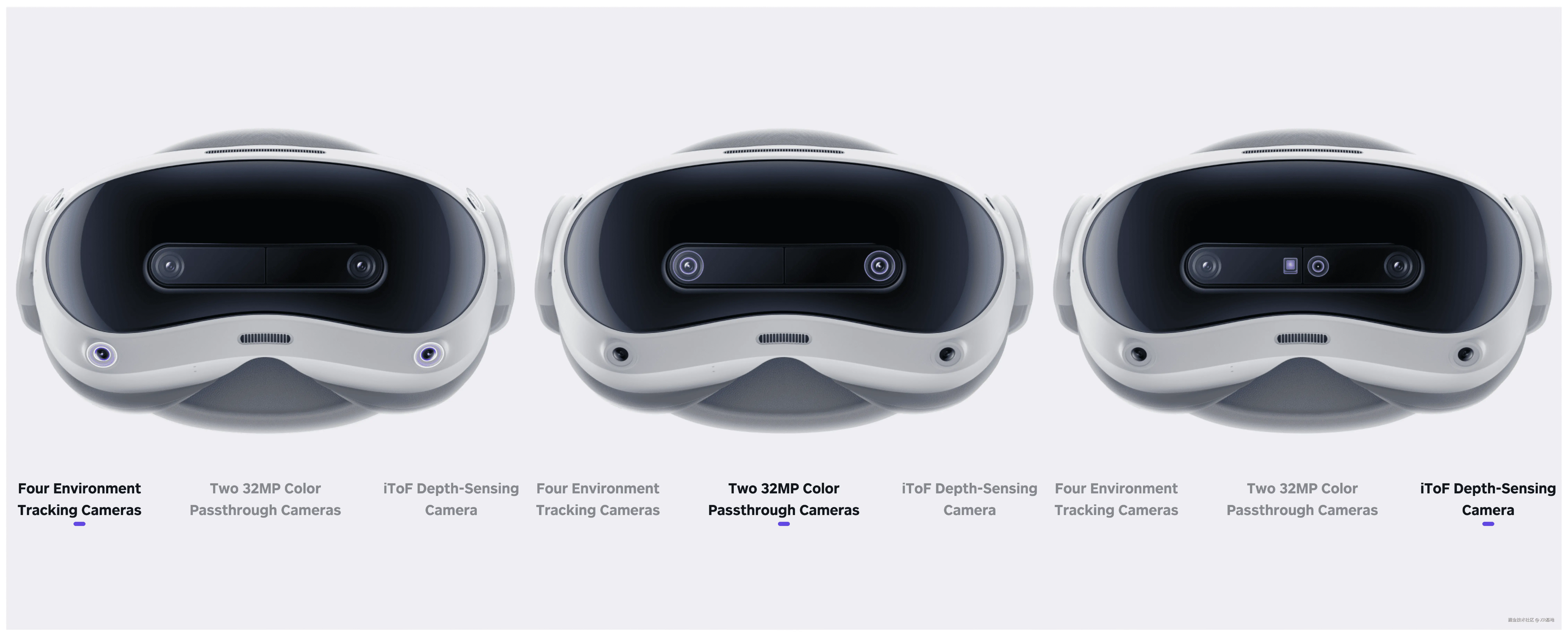 在硬件上,了配合 “MR 设备” 的定位,PICO 也是给 Ultra 配上了四颗环境追踪摄像头、两颗彩色透视摄像头和深度感知摄像头。
