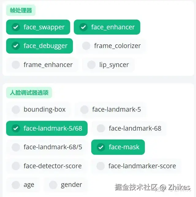 在脸部有物体遮挡时,选择适当的遮罩模式,达到更好的融合效果。使用遮罩时建议开启调试模式,也就是face_debugger这个模式,开启这个选项会有人脸调试器选项提供选择。这个选项仅供预览使用,点 开始 前,取消勾选face_debugger