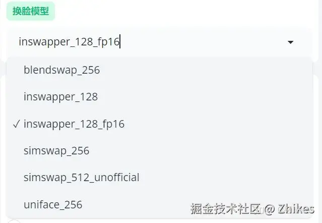 可选择不同的换脸模型: