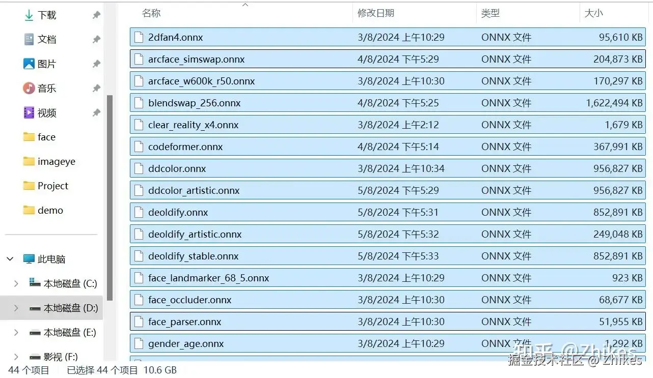 现在基础换脸模型+帧着色器模型+帧增强器模型+人脸增强模型+人脸调试模型的所有模型总数加起来得有44个,全部模型文件高达10G多。
