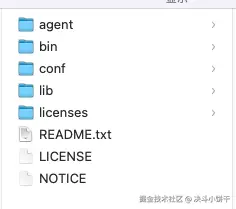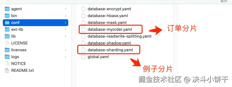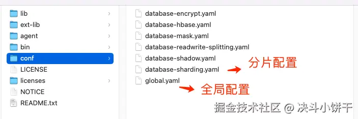 访问 下载页面,获取 ShardingSphere-Proxy 二进制安装包, 解压缩的文件目录如下: