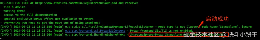 在 Linux 操作系统上,运行 bin/start.sh;在 Windows 操作系统上,运行 bin/start.bat,以启动 ShardingSphere-Proxy。