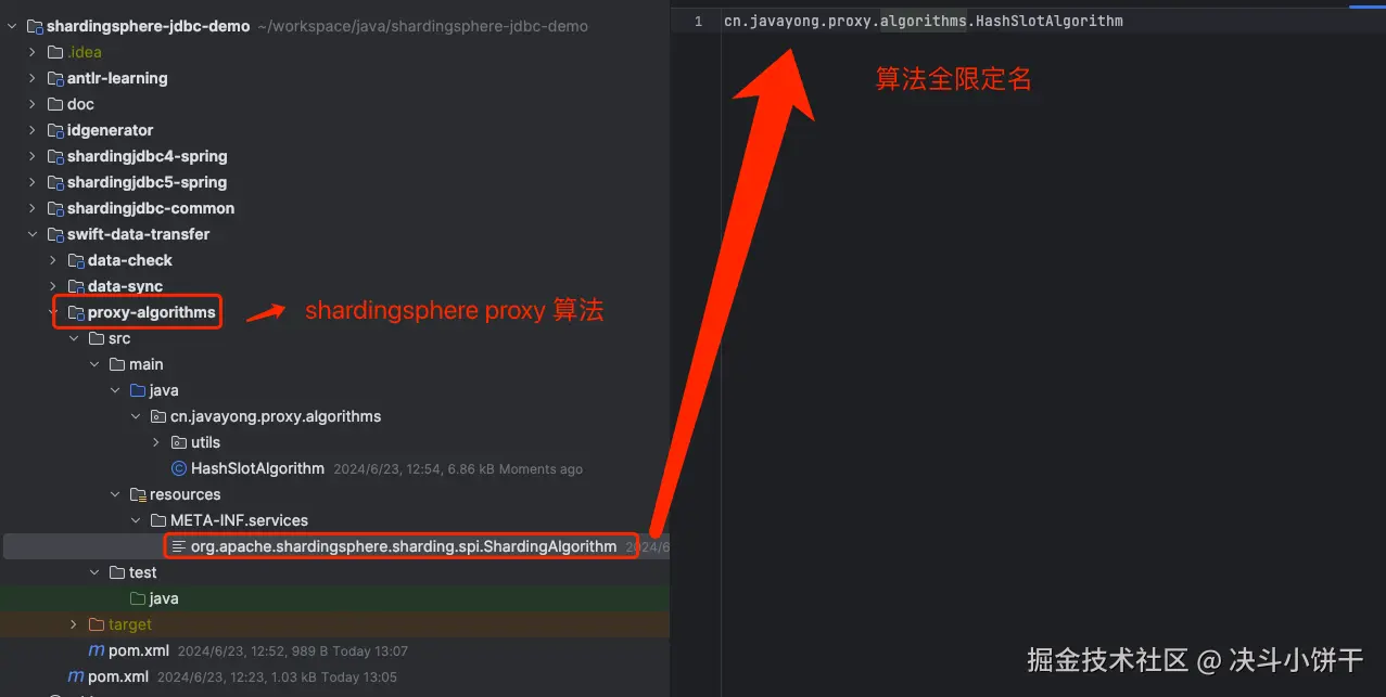 3、在 META-INF/services 目录下新建文件 org.apache.shardingsphere.sharding.spi.ShardingAlgorithm ;