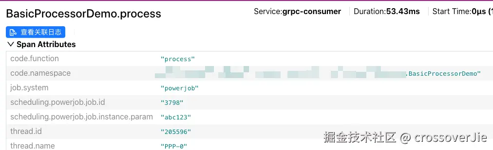 这样可以根据这些请求信息生成 span 的 attribute,也就是 jobId, jobParam 等数据。