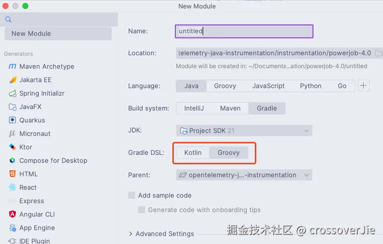 首先第一个是创建模块的时候记得使用 kotlin 作为 gradle 的 DSL。