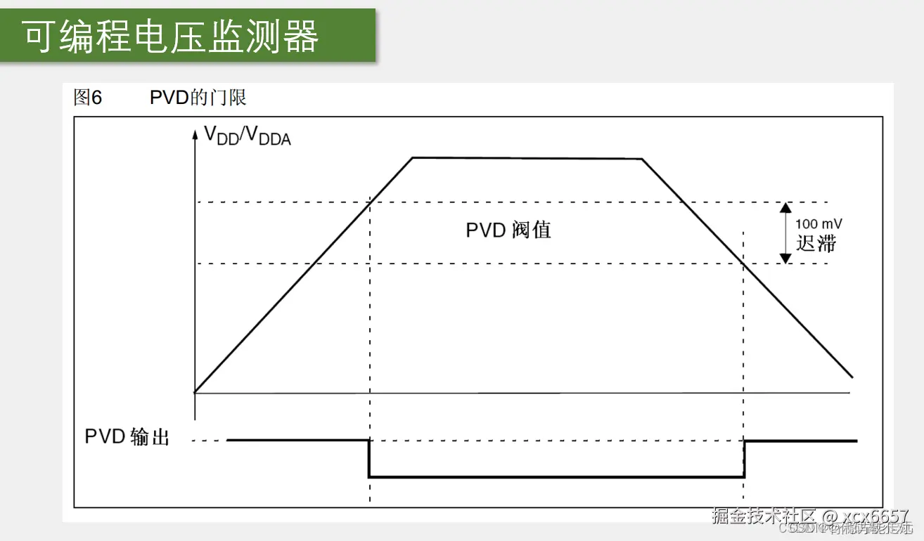 然后下面这个是可编程电压监测器,简称PVD,他的工作流程也是监测VDD和,VDDA的供电电压。