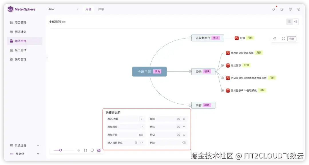 为了提升使用思维导图设计测试用例的效率,MeterSphere开源项目组在MeterSphere v3.2.0版本中增加了思维导图模式的快捷键操作功能。