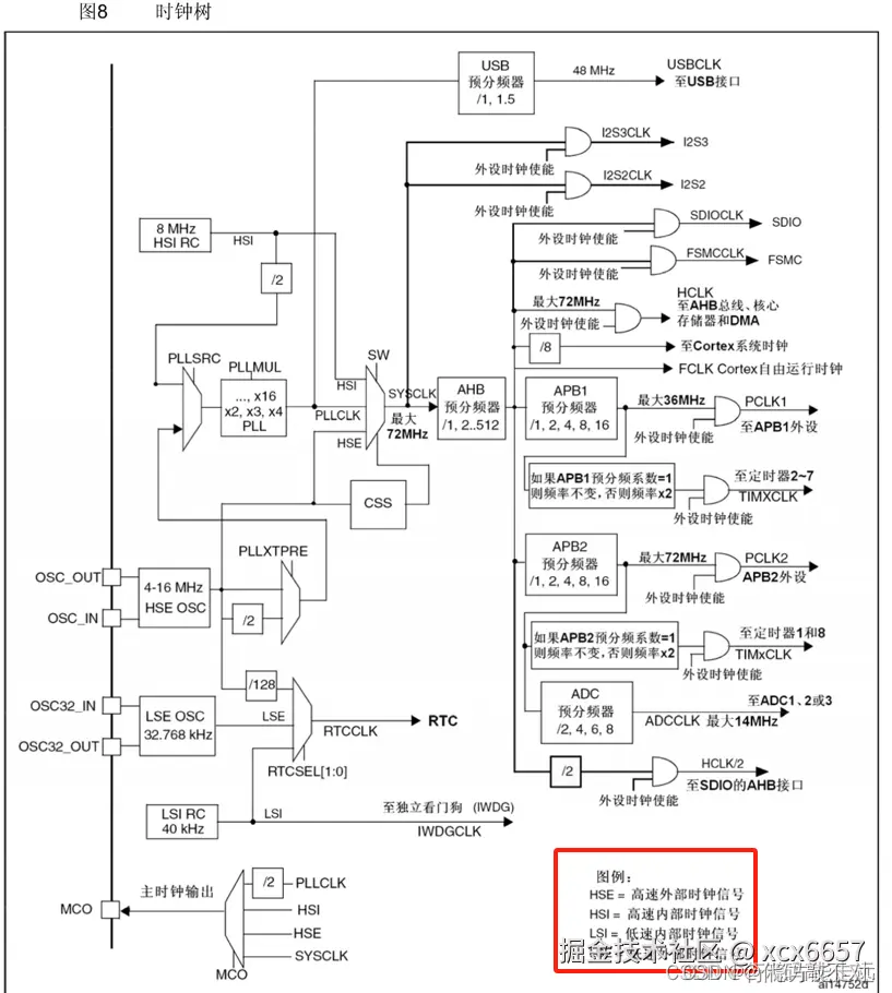 总结: 最常用的就是中间这一路,外部32.768KHz的晶振,提供RTCCLK的时钟。