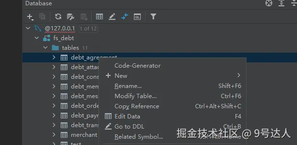 还是为了开发脚手架,打算新增一个根据表字段生成代码的demo,后续再去结合我们项目用的数据库生成框架,可以更高效的开发,就考虑使用idea的databasetool插件,来获取表信息