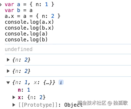 - var a = { n: 1 } 给a在堆中开辟了一块内存空间