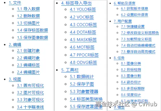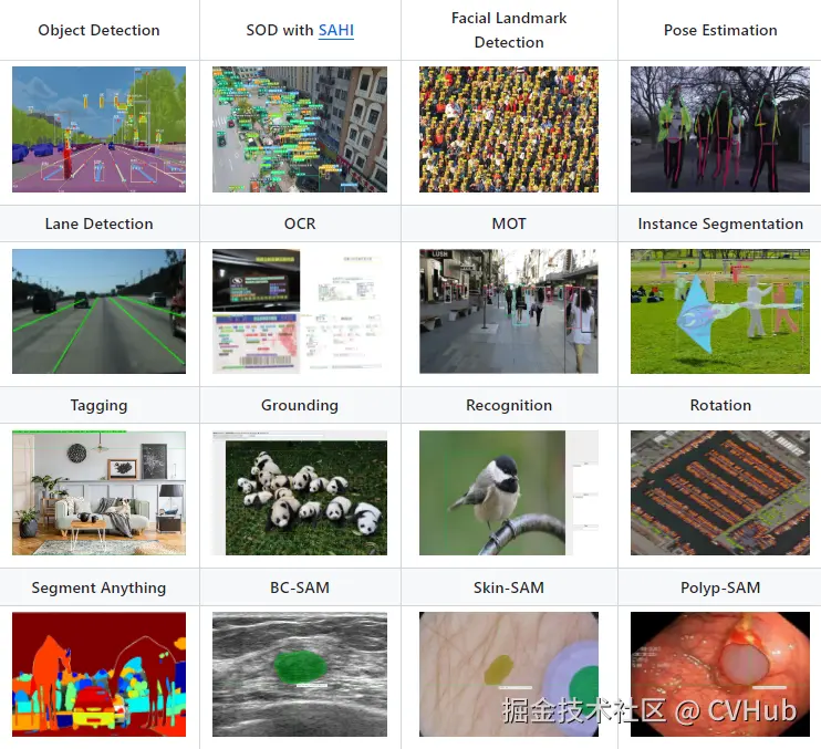 作为最主打的核心亮点,X-AnyLabeling 中内置了多领域各方向最先进的深度学习算法,包括但不仅限于经典的YOLO以及热门的SAM和Grounding系列等算法,目前仍在不断扩充中,详情可访问以下链接: