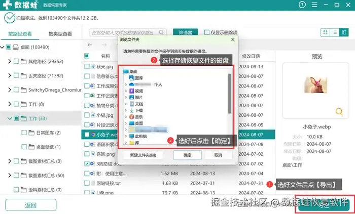 第3步: 选定自己需要恢复的文件后,再选好存放恢复文件的新位置。