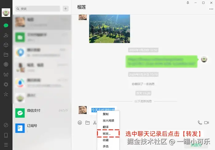 方法一:联系好友转发微信聊天记录