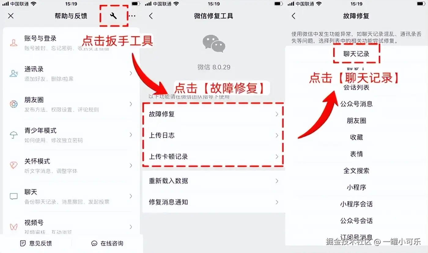 方法三:通过微信的修复工具恢复聊天记录