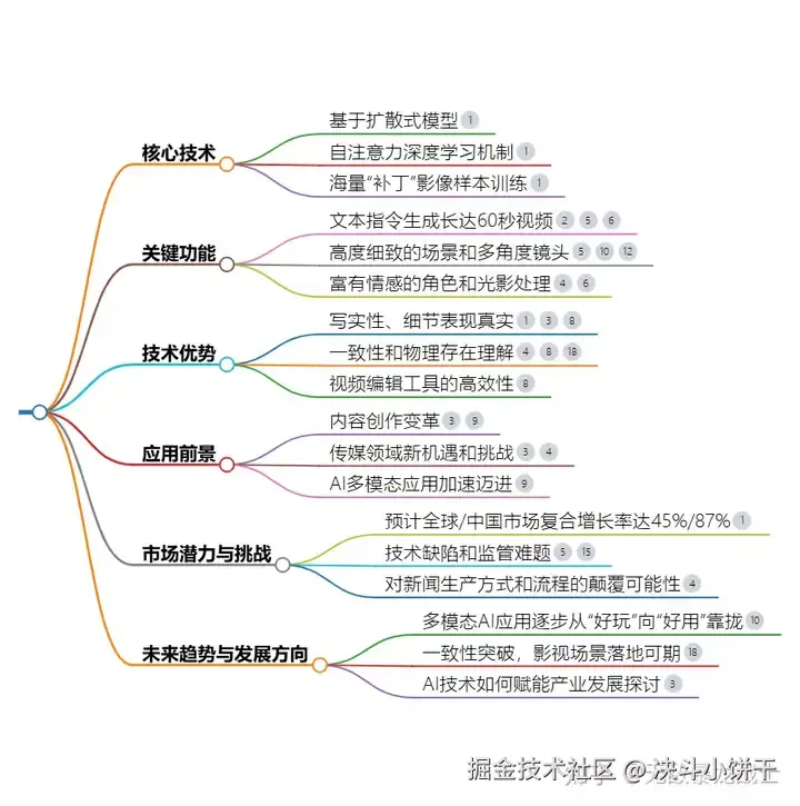 Sora作为一款先进的视频生成模型,在技术架构、视频生成能力和应用范围等方面都展现了强大的潜力和优势。然而,它也面临着一些技术和监管上的挑战,需要持续优化和改进以实现更广泛的应用和更大的商业价值。