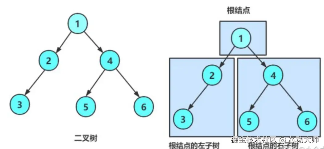 由一个根节点加上两棵别称为左子树和右子树的二叉树组成