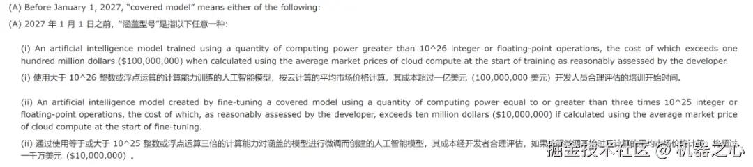 具体来说,该法案旨在从模型层面对人工智能进行监管,适用于在特定计算和成本阈值之上训练的模型。但如果严格按照规定的计算和成本阈值来算,现在市面上所有主流的大型模型都会被认为存在「潜在危险」。而且,法案要求模型背后的开发公司对其模型的下游使用或修改承担法律责任,这被认为会给开源模型的发布带来「寒蝉效应」。