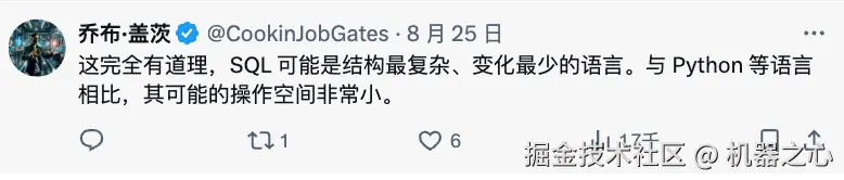 看完展示,有网友表示,AI 写 SQL 的效果这么好,似乎也合情合理。因为相比 Java、Python 等编程语言,SQL 中有 90% 是英语,它主要用于和数据库交互,在格式上相对固定,需要填空的部分比较少,模型产生「幻觉」的空间有限。