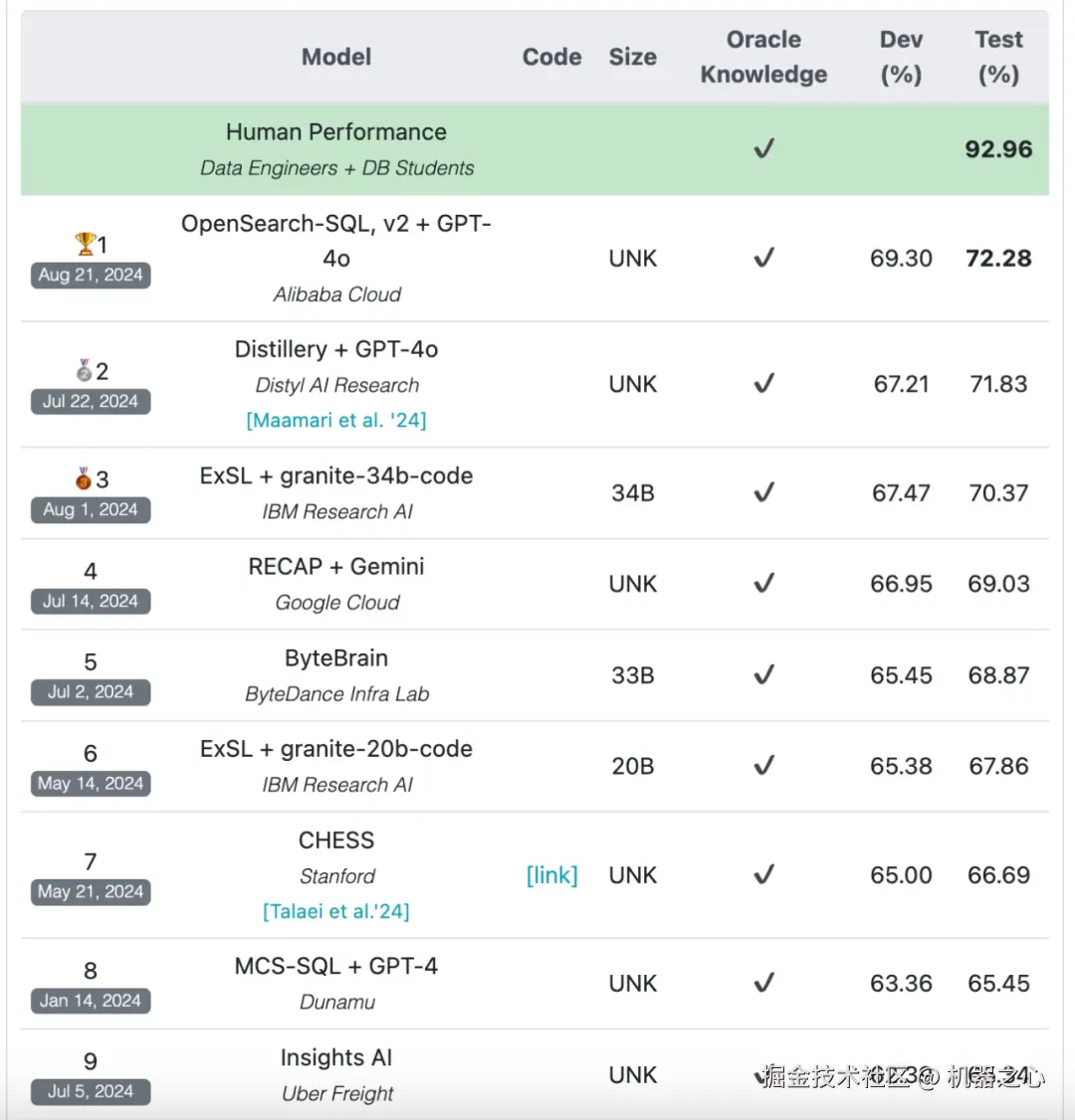 在另一个注重策略针对大型数据库的基准测试集中,最好的方法准确率也仅为 72.28%,远不及 95%。