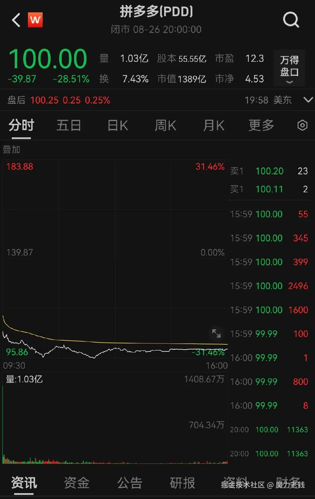 但谁能想到呢,美股一开盘,剧情来了个大反转,拼多多的股价不但没飙升,反而直接跳水,最惨的时候跌幅超过了30点。这下子,原本打算去嗨的朋友们,只能无奈地回家啃馒头了。