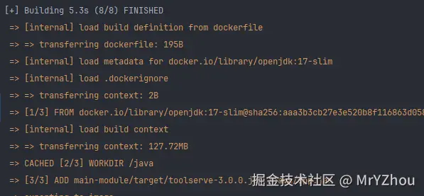首先使用了docker的分阶段构建技术。第一阶段构建出jar。第二阶段从第一阶段获拿成品jar,有助于减少包体积,是个非常常用的优化技巧。不单单是在java有效。