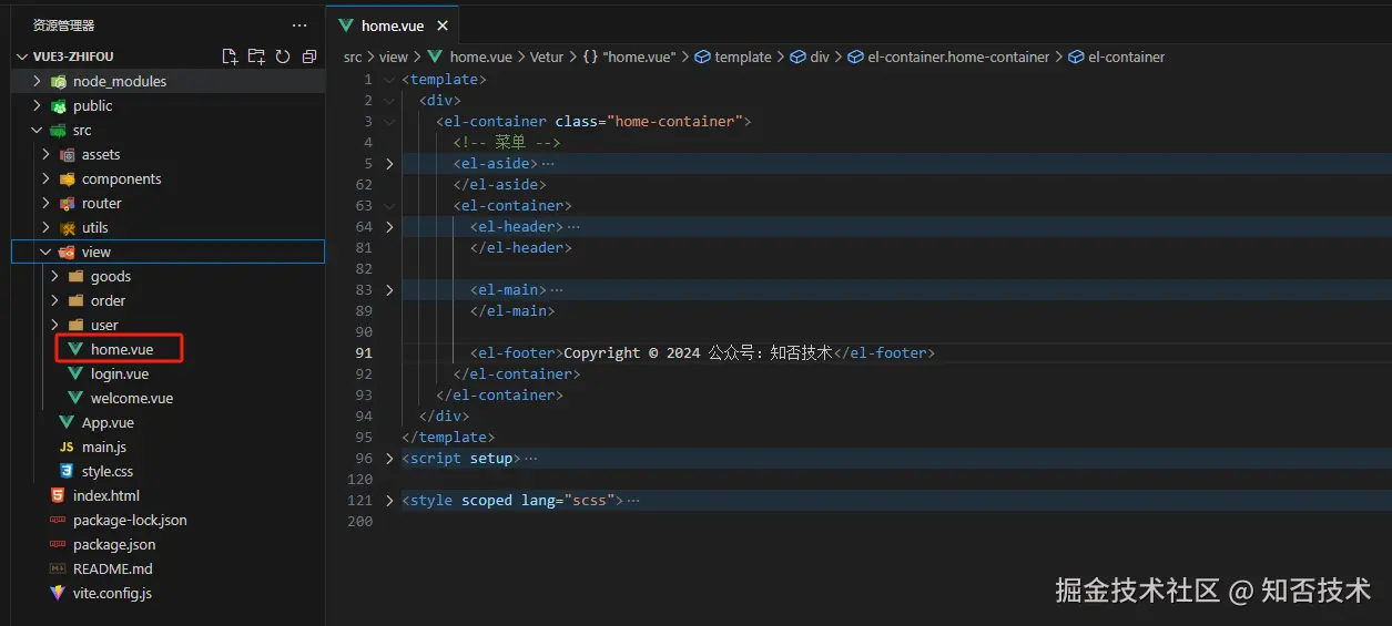 我们在 /src/view 文件夹下新建 home.vue 文件