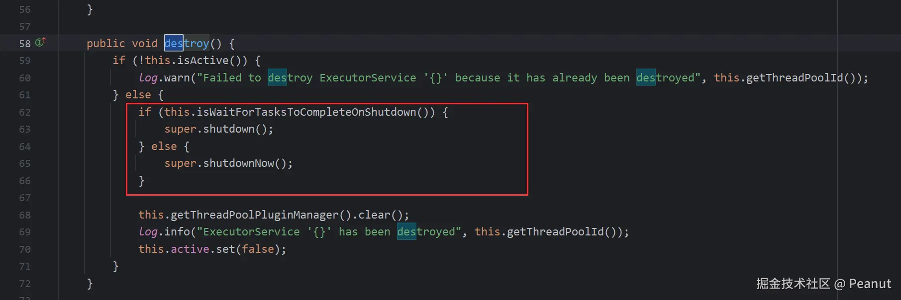 - 在destroy方法中,等待线程池的任务执行完毕再关闭线程池。