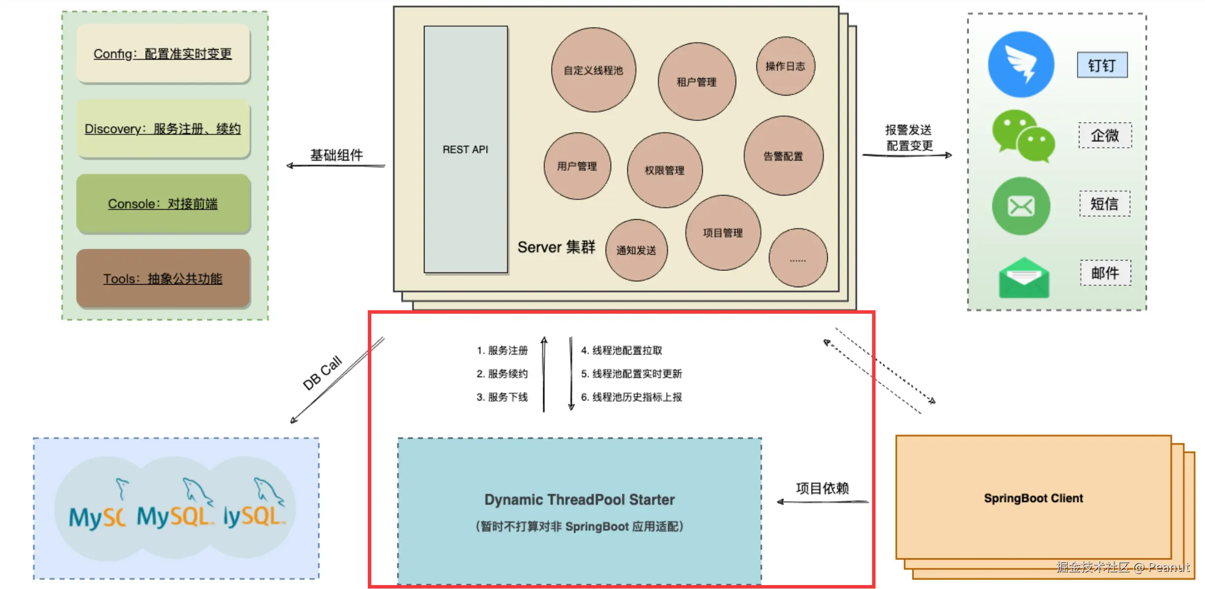 - 客户端 调用ThreadPoolExecutor线程池的api修改参数(setCorePoolSize)。