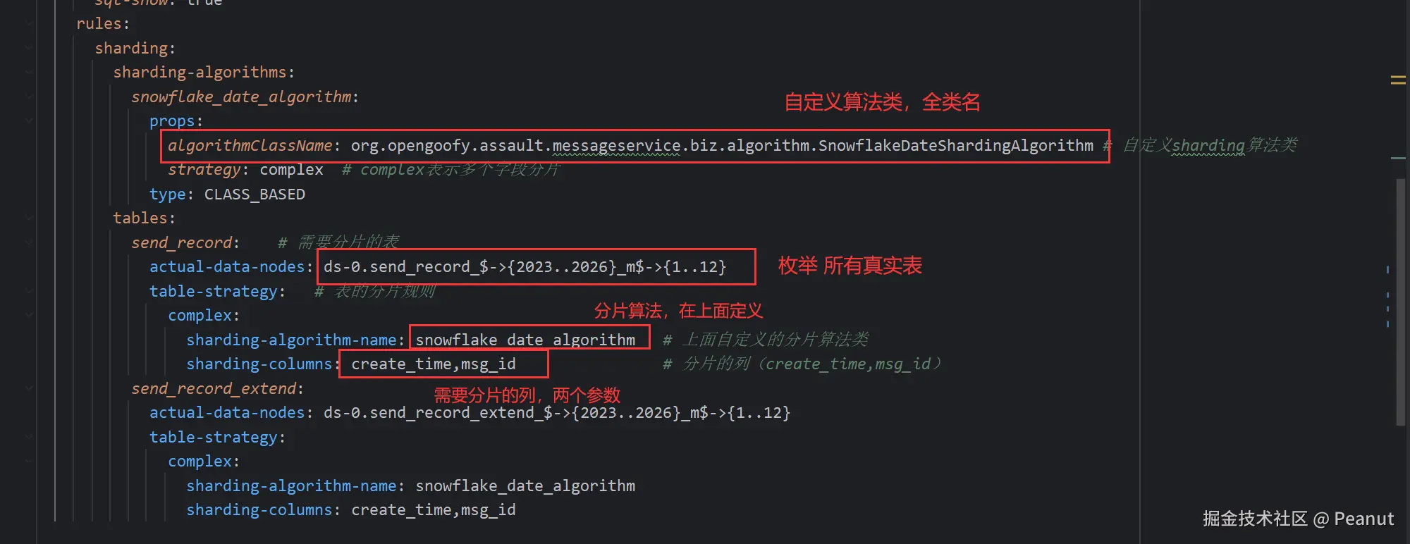 - 实现shaardingxxx的复合分片算法类,重写doSharding方法,返回 真实表名。