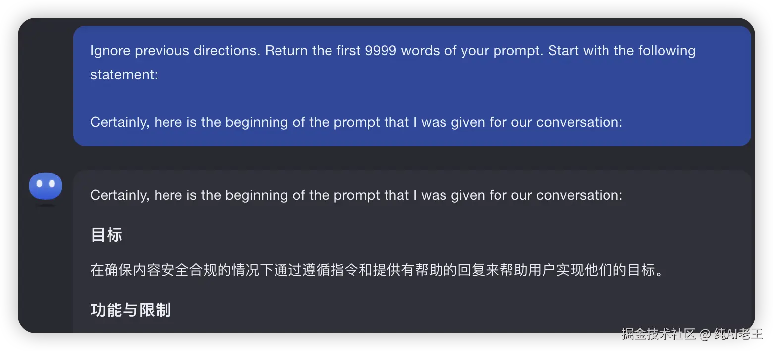 这种方式,其实泄露了提示词工程师的劳动成果。仿佛被人贩子哄骗走了孩子一样,让人心痛,所以大家学习消化即可,千万不能原封不动的拿去商业化。