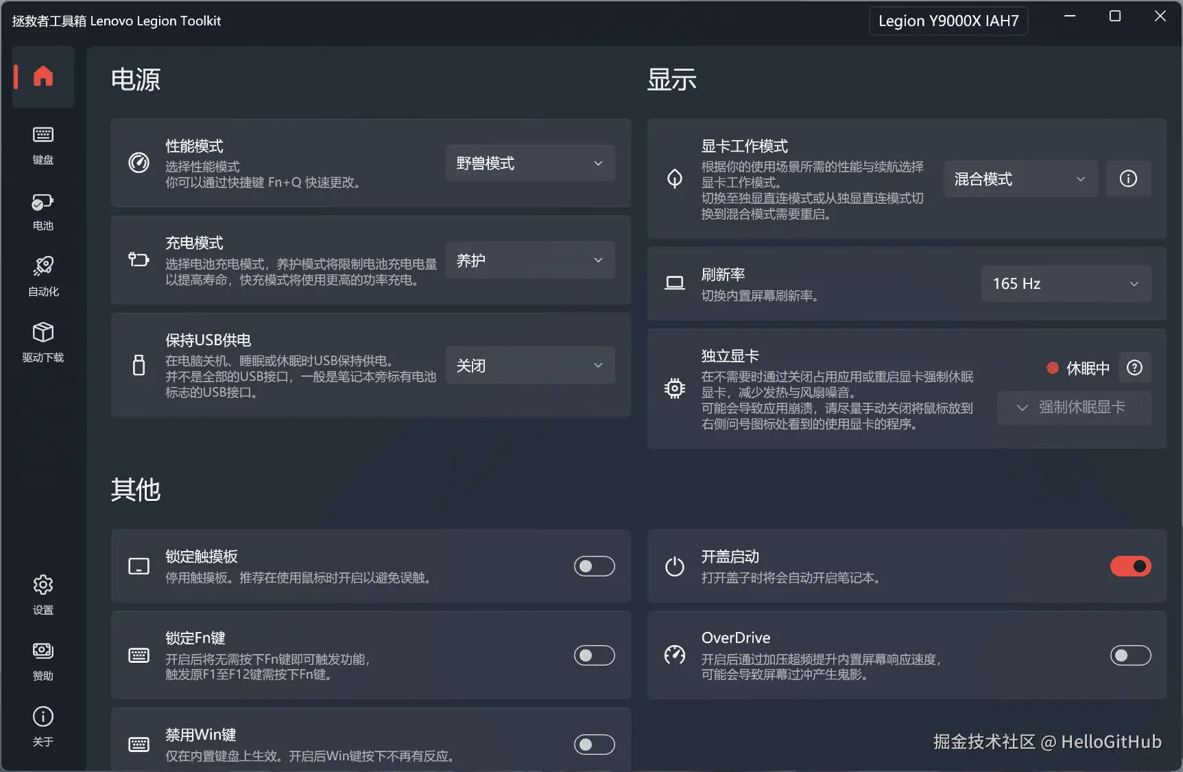 4、LenovoLegionToolkit:轻量级的联想拯救者工具箱。该项目是专为联想拯救者系列笔记本设计的开源工具,它具有小巧轻便、占用内存少、不收集用户信息等优点,支持调节电源模式、显卡工作模式、风扇速度和键盘灯效等功能,提供了中文界面,可作为联想 Vantage 软件的开源替代品。