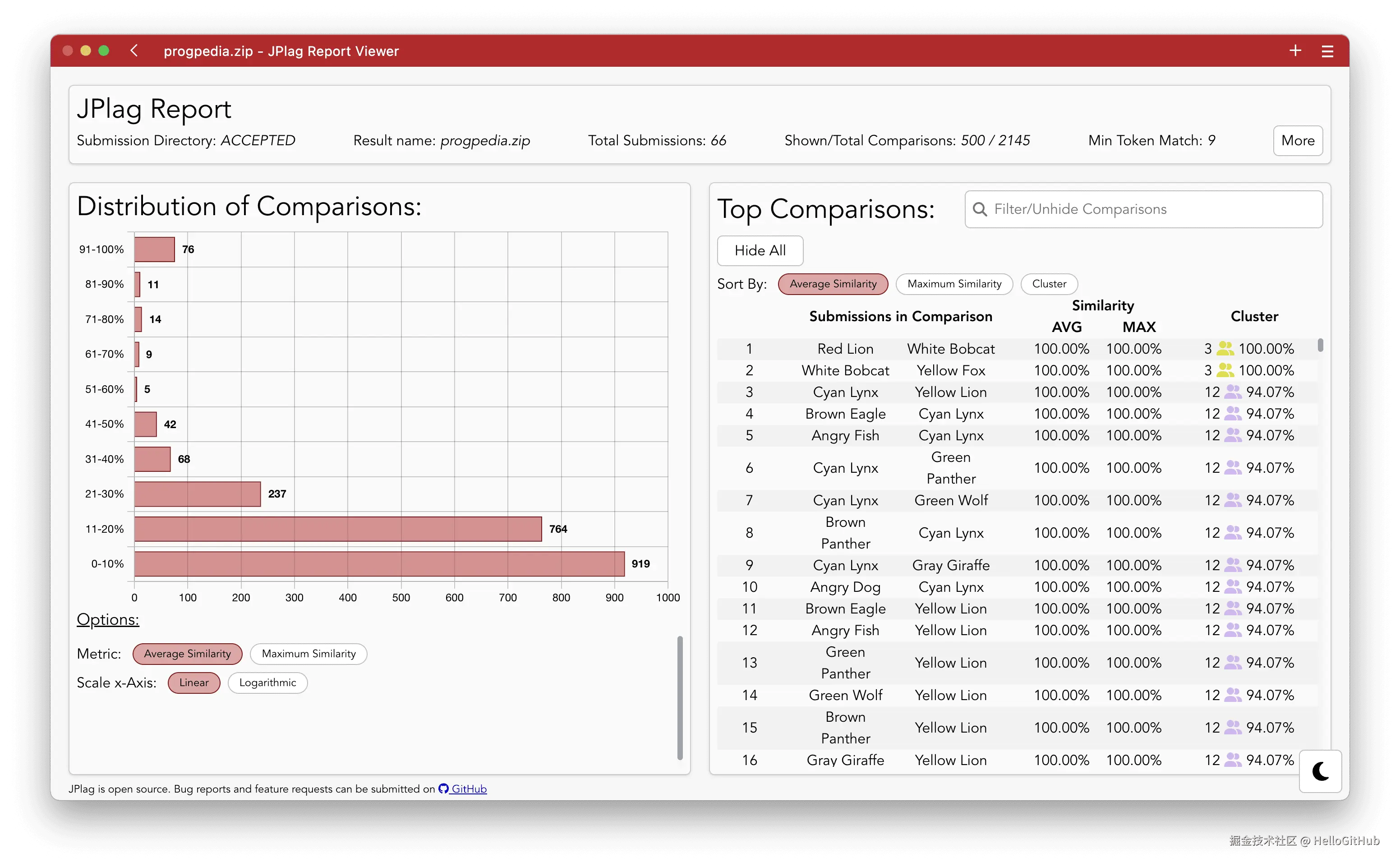 13、JPlag:开源的代码抄袭检测工具。这是一个用于检测源代码相似度的工具,支持 Java、C/C++、Python、JavaScript 等多种编程语言,适用于识别编程作业中的抄袭行为等场景。