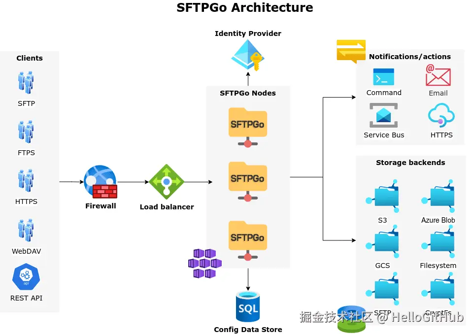 12、sftpgo:集成云存储的 SFTP 服务器。该项目是用 Go 编写的功能齐全、灵活可配置的 SFTP 服务器,支持 SFTP、SCP、FTP/S、WebDAV、HTTP/S 等多种文件传输协议,并兼容本地文件系统、S3、谷歌云存储等多种存储后端。此外,它还提供了 Web 界面,便于轻松创建和管理用户、文件夹、群组等资源。来自 @猎隼丶止戈reNo7 的分享