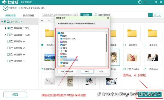 步骤3: 完成选择,最后再选恢复文件的存储位置即可。