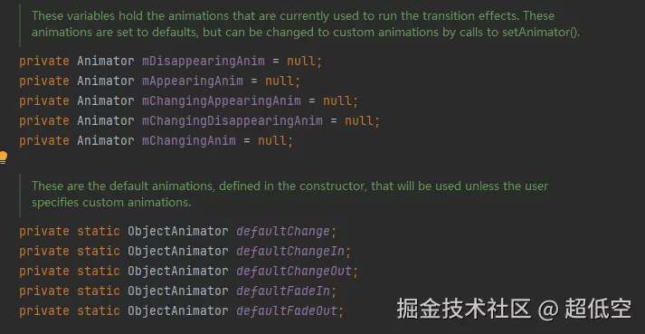LayoutTransition只有一个构造方法,在构造方法里创建了默认的五种属性动画,