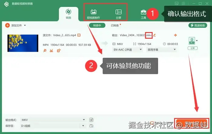 视频格式怎么转换?对于需要将mp4转mkv的用户来说,我们强烈推荐使用数据 蛙视频转换器。它不仅能确保转换过程的顺利进行,还能保证视频文件的质量和完整性,是您视频格式转换的得力助手。