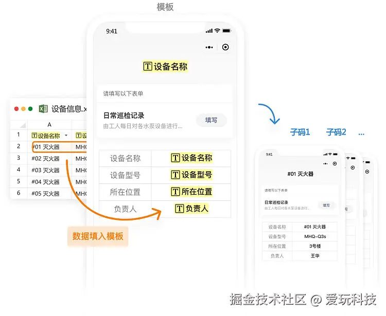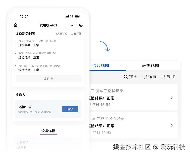 动态数据:表单收集到的数据,通过动态数据功能进行展示,用于展示发生在物品、人等信息上的动态变化,形成履历。