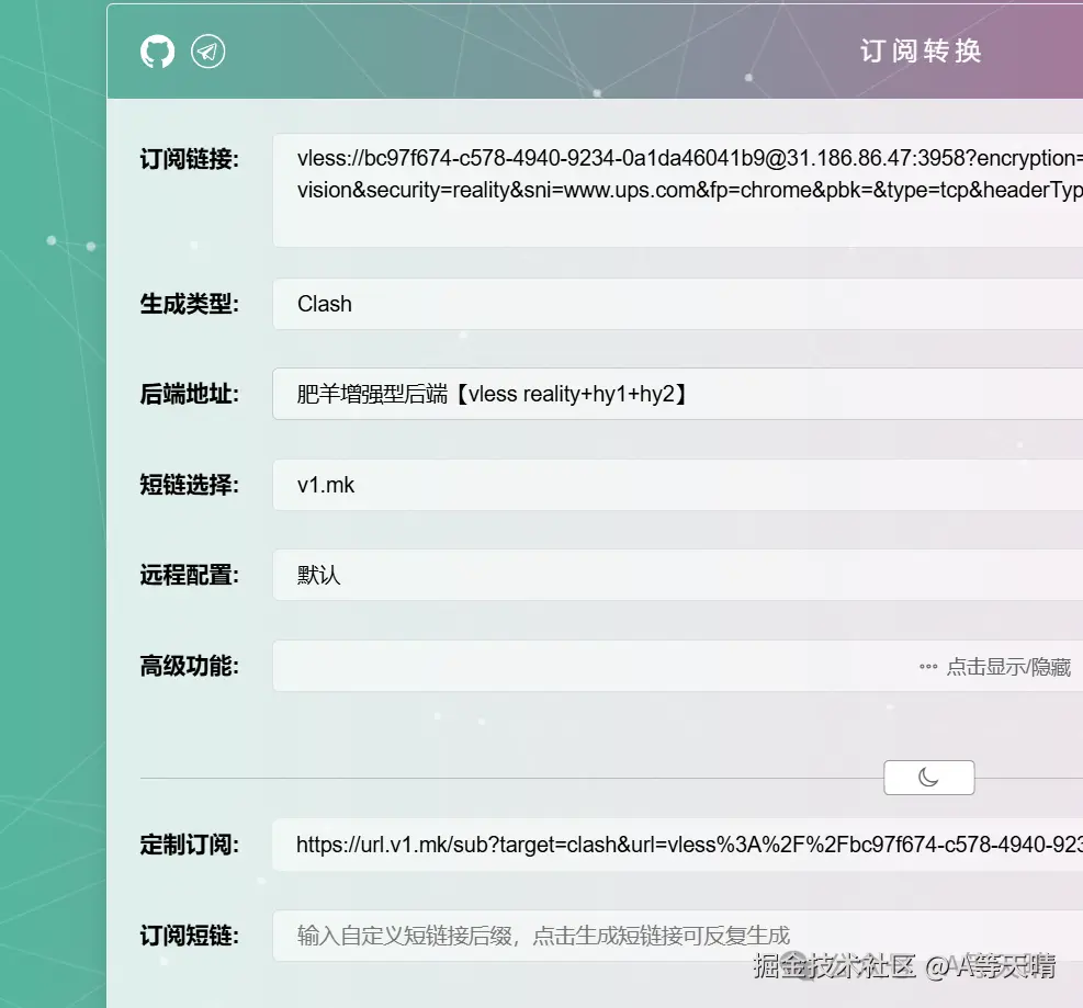 然后按照 提示安装成功,最后换一下还需要转换一下节点的订阅链接,当然如果你使用软件直接支持那些节点那就可以直接导入,如果不支持,则要链接转换一下。
