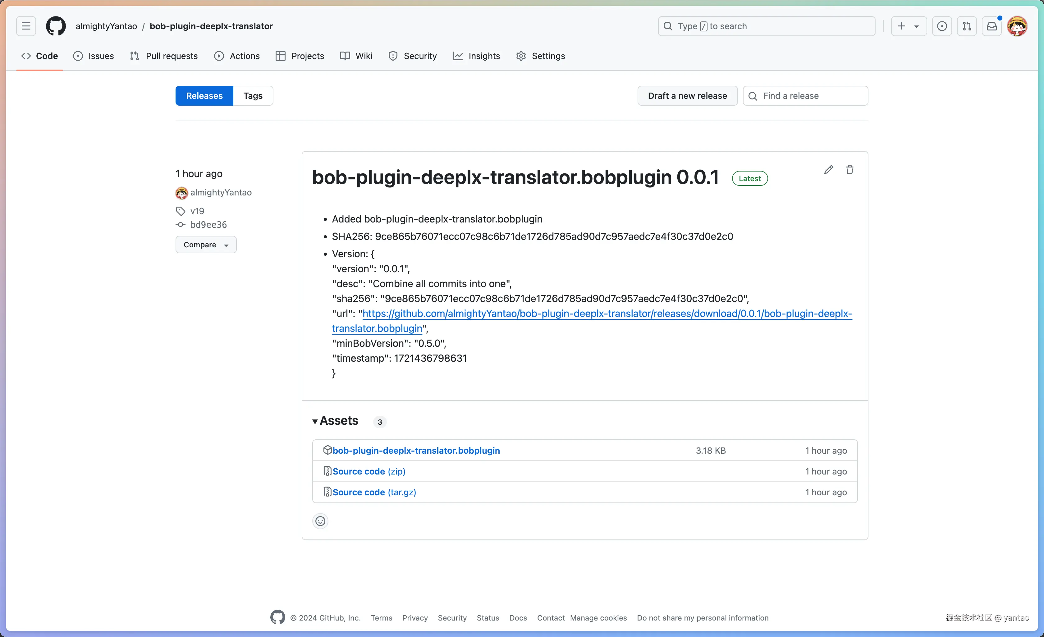.bobplugin文件、SHA256 值和版本信息。 - 发布为正式版本 (