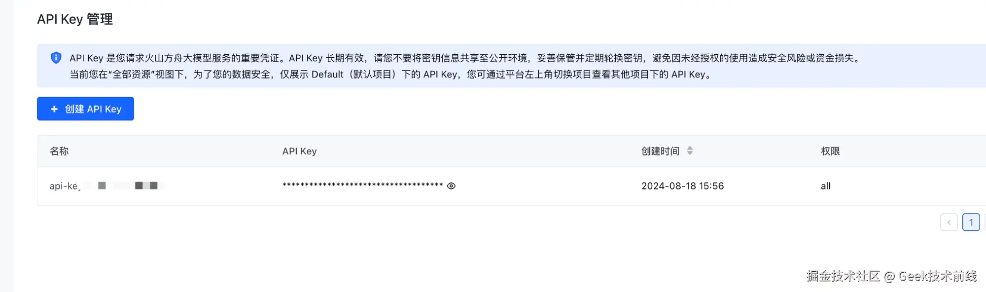 前往 API key 管理 创建 API key