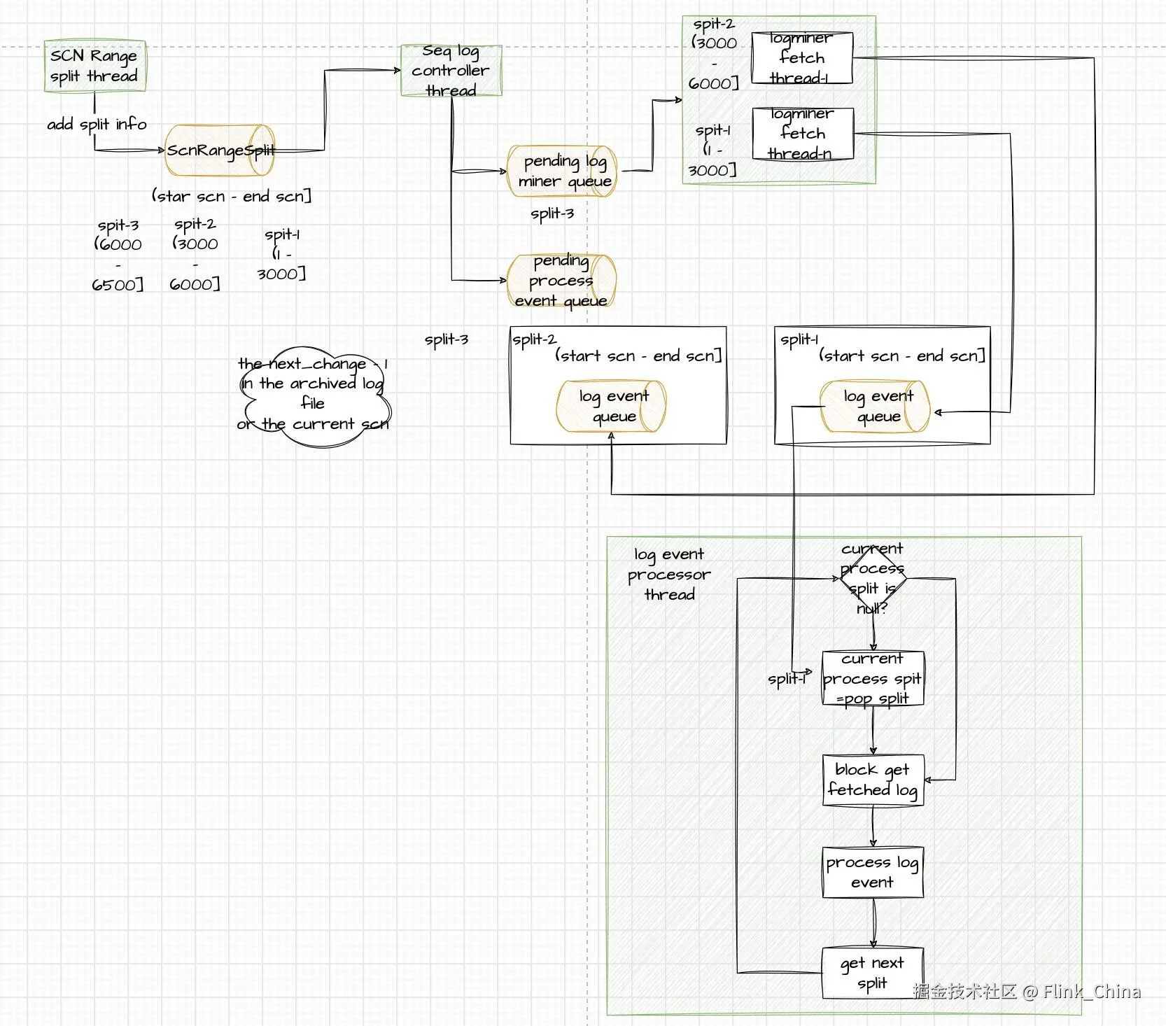 不过目前 Flink CDC Oracle Connector 也存在一些性能问题,众所周知,Oracle CDC依赖Debezium组件解析 Redo Log 与 Archive Log,Debezium 通过Oracle 的 Logminer 解析 Log。最大的问题就在于 LogMiner 的性能限制, 熟悉 Oracle 的开发者会知道,LogMiner是运行在 Oracle 内部, 并且运行在日志落地之后, 不可避免地需要消耗数据库的算力去完成工作, 为了降低这个不在主流程的进程的资源消耗, Oracle 对 LogMiner 做了非常严格的资源限制, 每个 LogMiner 进程, 他的资源消耗都不能超过 1 个 cpu 核心, 在大多数场景下, 这个将 LogMiner 的日志解析速度限制在1w条每秒以下, 在一些制造业的场景下, 这个速度是远远不够的, Oracle 是一个事务数据库, 一个大的 Update, 可能会带来数十万上百万的更新, 在这种情况下, 每秒1w的解析速度会使得下游延迟增大到数分钟级别, 更糟糕的是, 在数据库本身负载较高的情况下, 由于 LogMiner 的解析与数据库共享负载, 会让解析速度进一步下降。