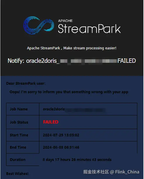 StreamPark 有着完善的作业操作记录,可以清晰的记录所有任务 Release、Start、Cancel 的记录,对于 yarn application 形式的任务,记录了每次运行的 appId,便于后续的 yarn 日志翻阅、运行状态的监测等等。一旦报错,StreamPark 会迅速发送告警,如果配置了重启机制,可以实现分钟级的重启效率。
